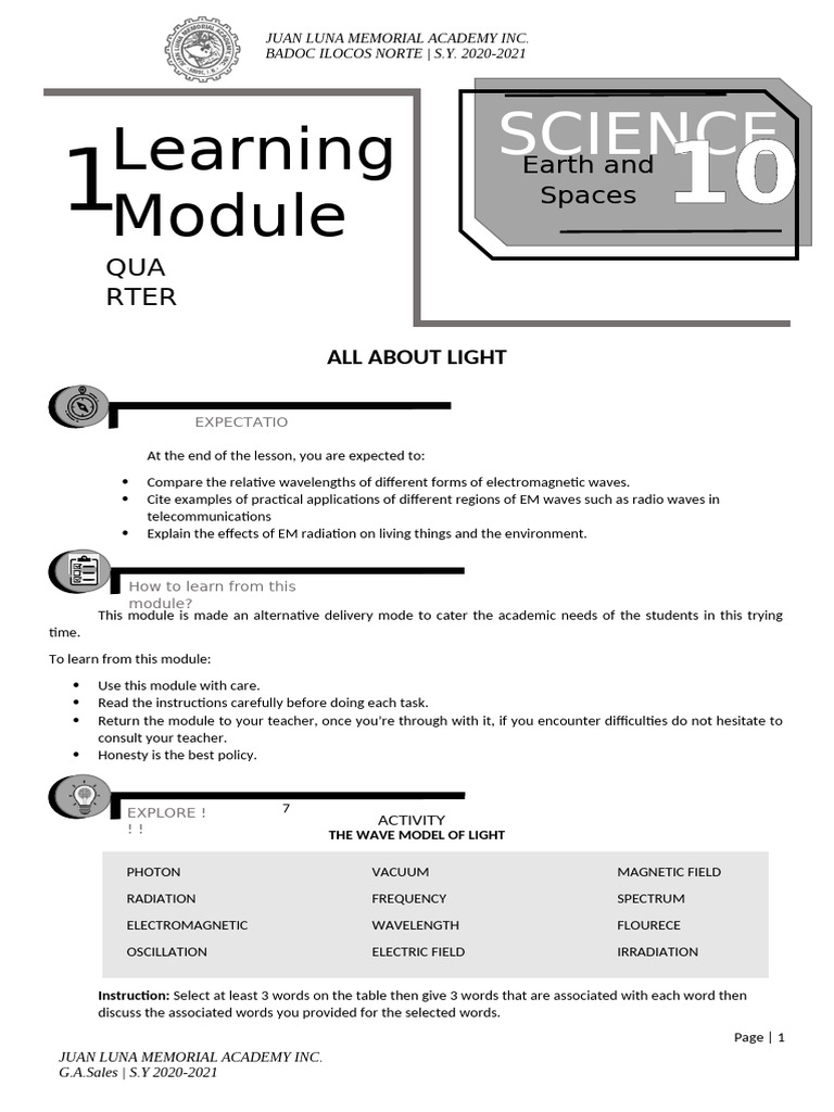 This module is made an alternative delivery mode to cater the academic needs of the students in this trying