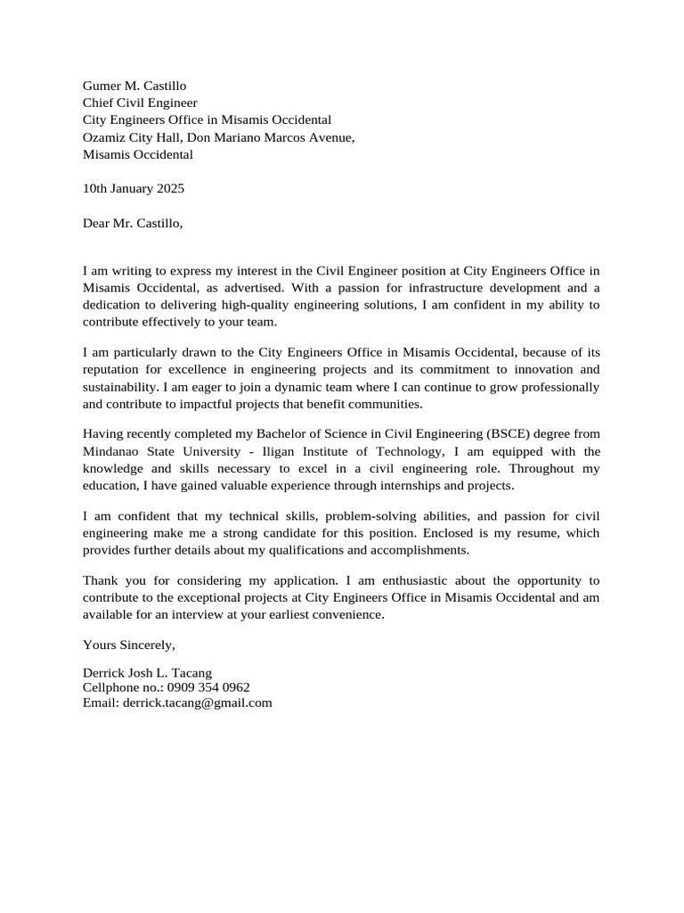I am writing to express my interest in the Civil Engineer position at City Engineers Office in