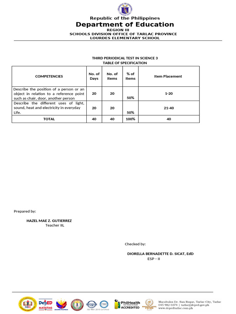 THIRD PERIODICAL TEST IN SCIENCE 3
