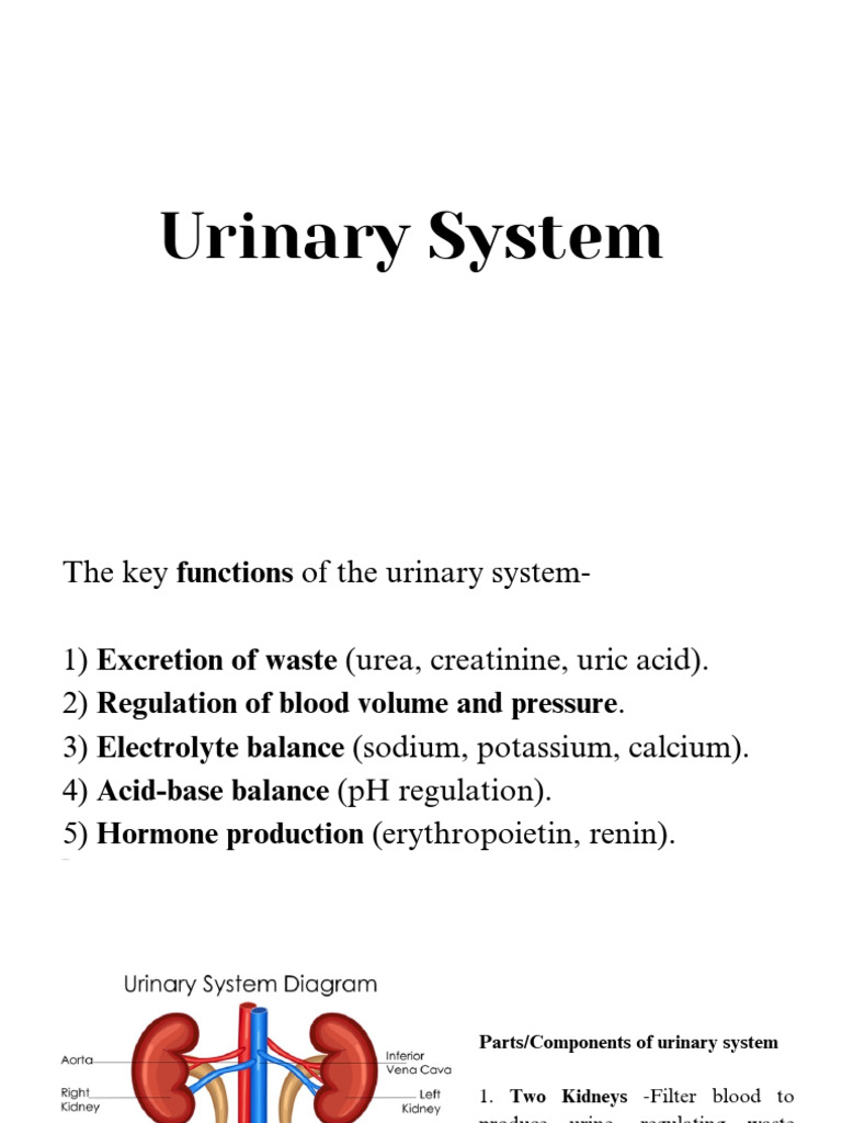 Acid-Base Balance: Helps maintain a pH of 7.35-7.45 by excreting hydrogen ions and