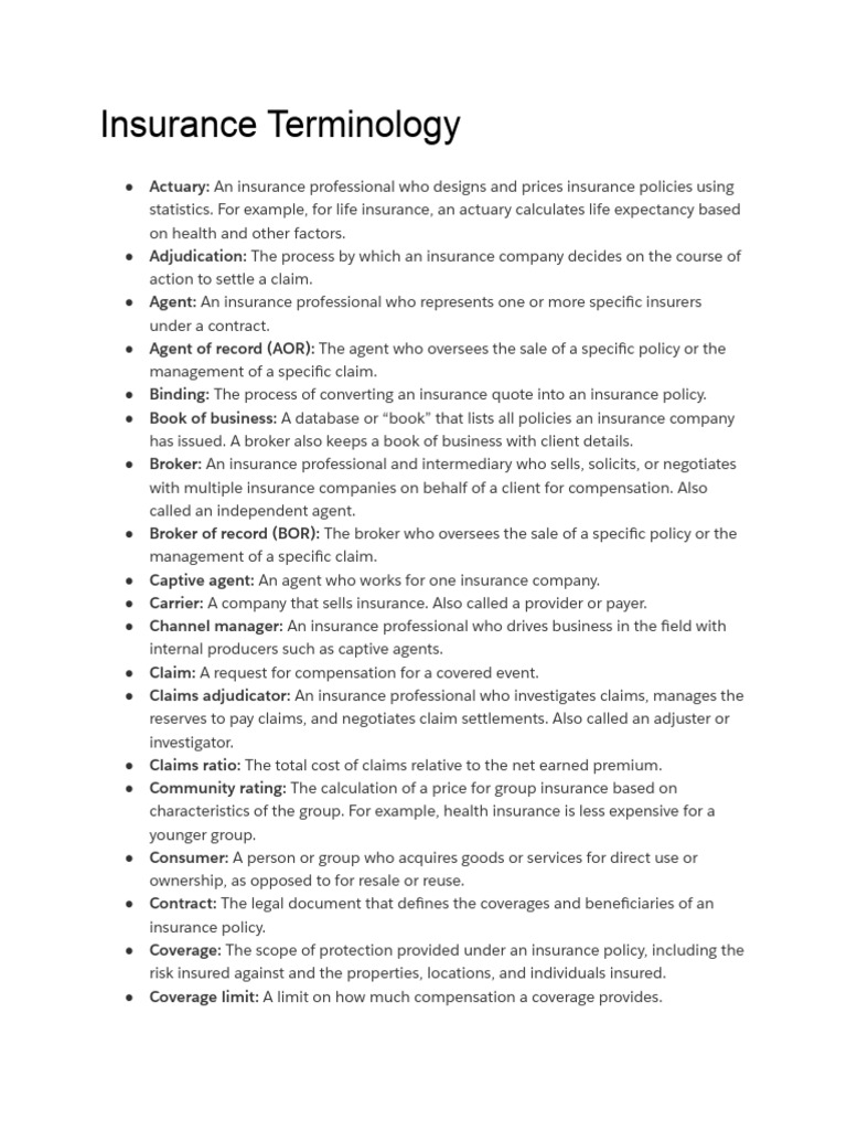 Insurance Terminology
