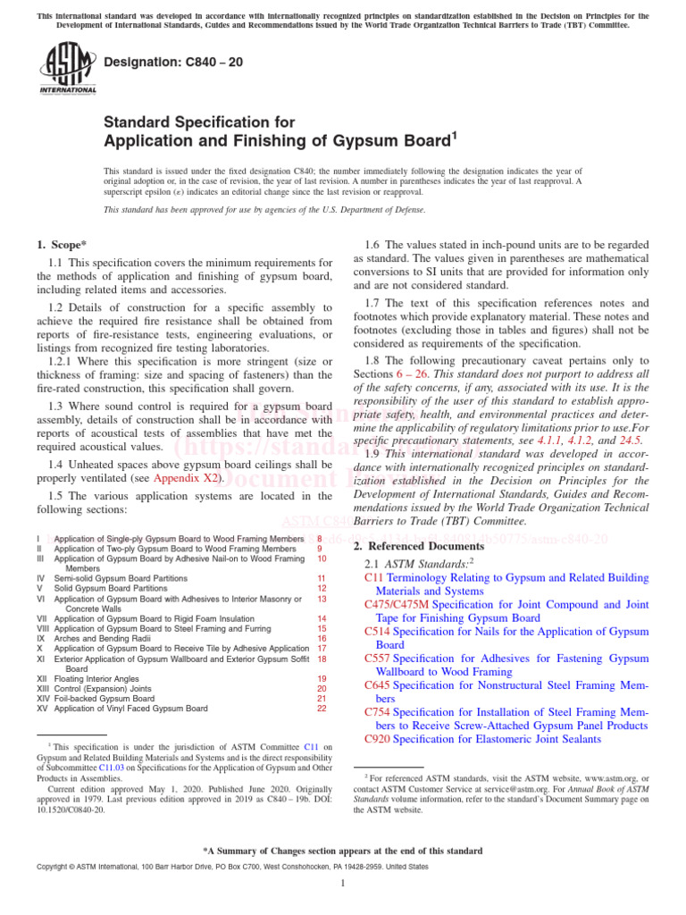 XI Exterior Application of Gypsum Wallboard and Exterior Gypsum Soffit 18 C557 Specification for Adhesives for Fastening Gypsum