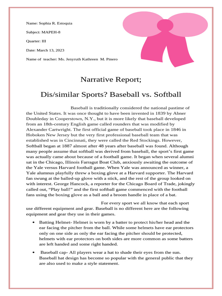 Dis/similar Sports? Baseball vs. Softball
