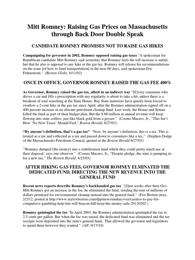Mitt Romney: Raising Gas Prices On Massachusetts Through Back Door Double Speak