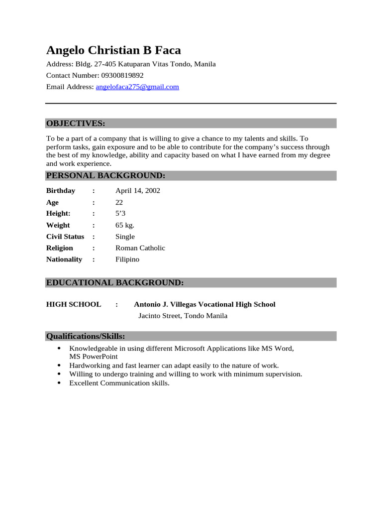 and work experience.