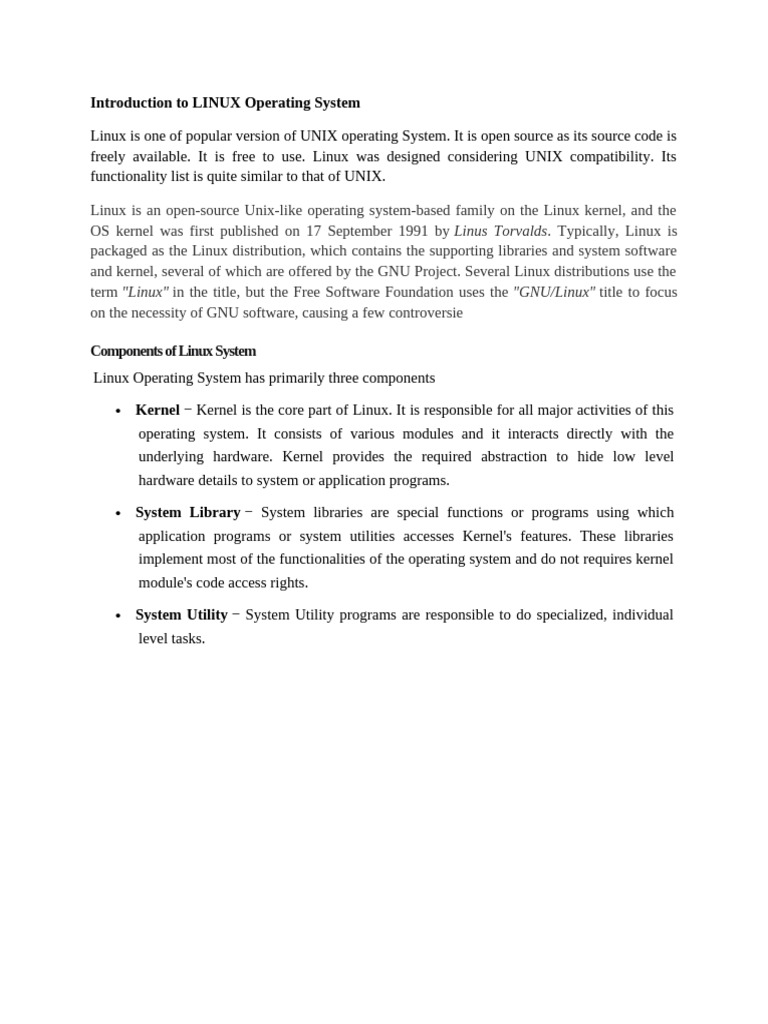 Linux is one of popular version of UNIX operating System. It is open source as its source code is