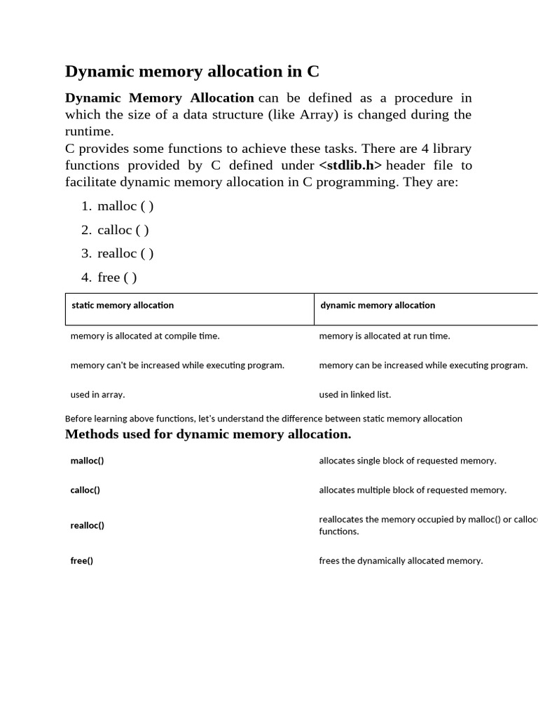 1. “calloc” or “contiguous allocation” method in C is used to dynamically
