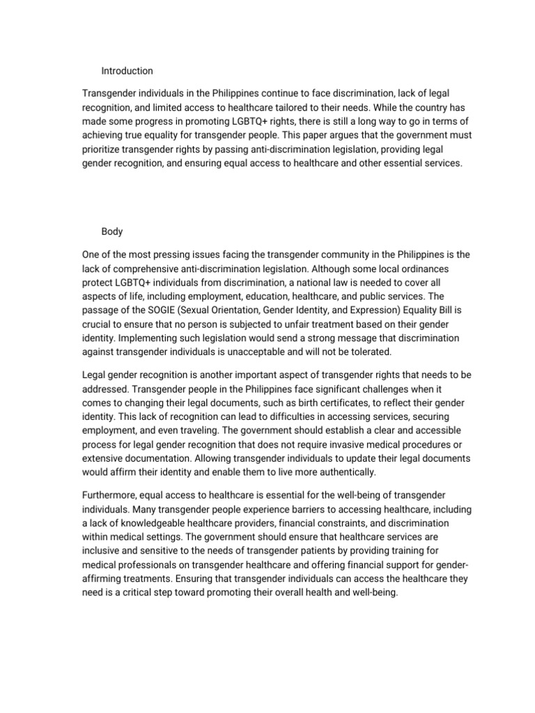 In conclusion, advocating for transgender rights in the Philippines is a necessary step
