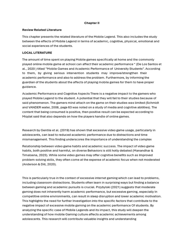 This chapter presents the related literature of the Mobile Legend. This also includes the study