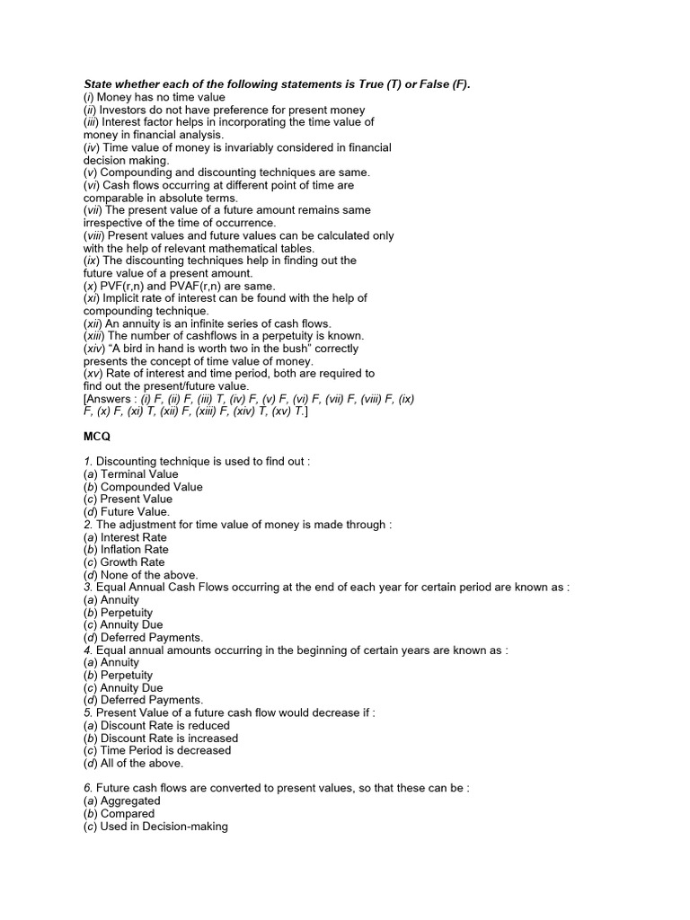(ii) Time value of money facilitates comparison of cash flows occurring at different time periods