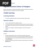 Lesson 2: Common Factors and HCF