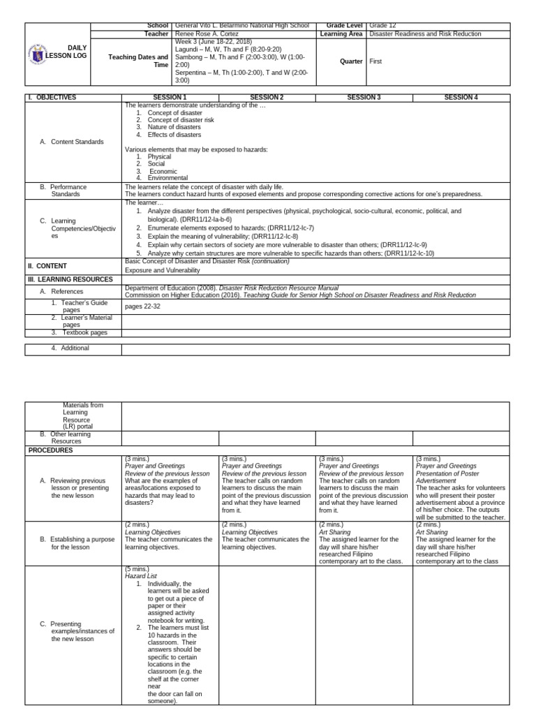 Teacher Renee Rose A. Cortez Learning Area Disaster Readiness and Risk Reduction