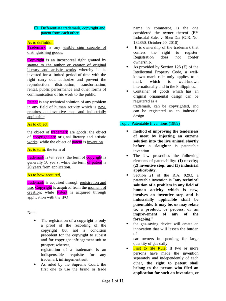 Topic: Patentable and Non-Patentable