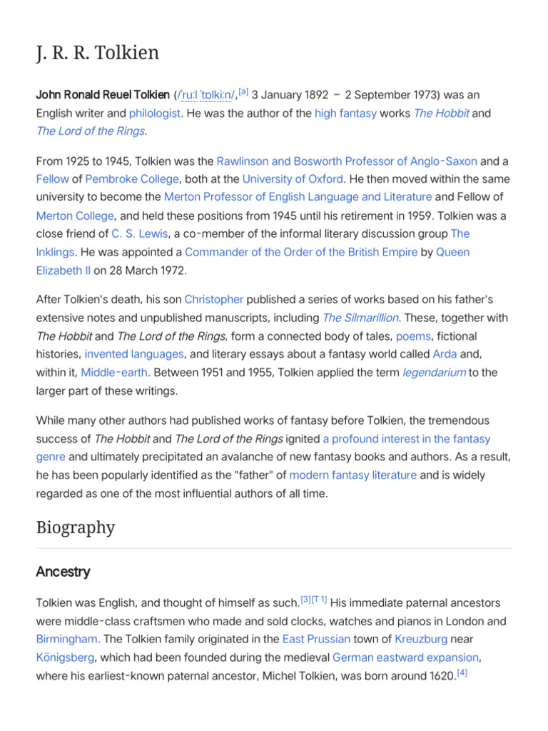 Tolkien was English, and thought of himself as such.[3][T 1] His immediate paternal ancestors