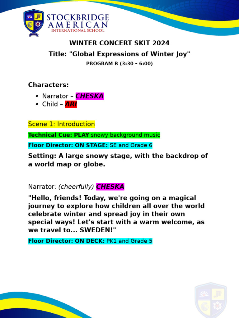 Program B Performed by: Grade 3 Min – Ada will do the Intro. Then