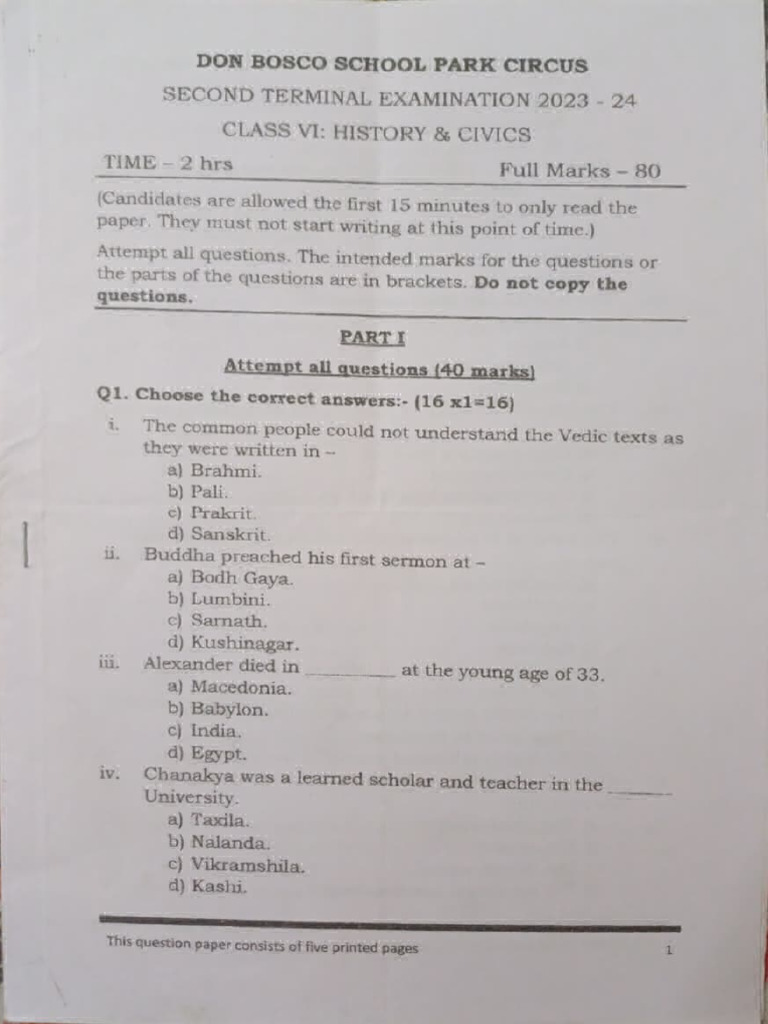 CLASS VI: HISTORY &% CIVICS