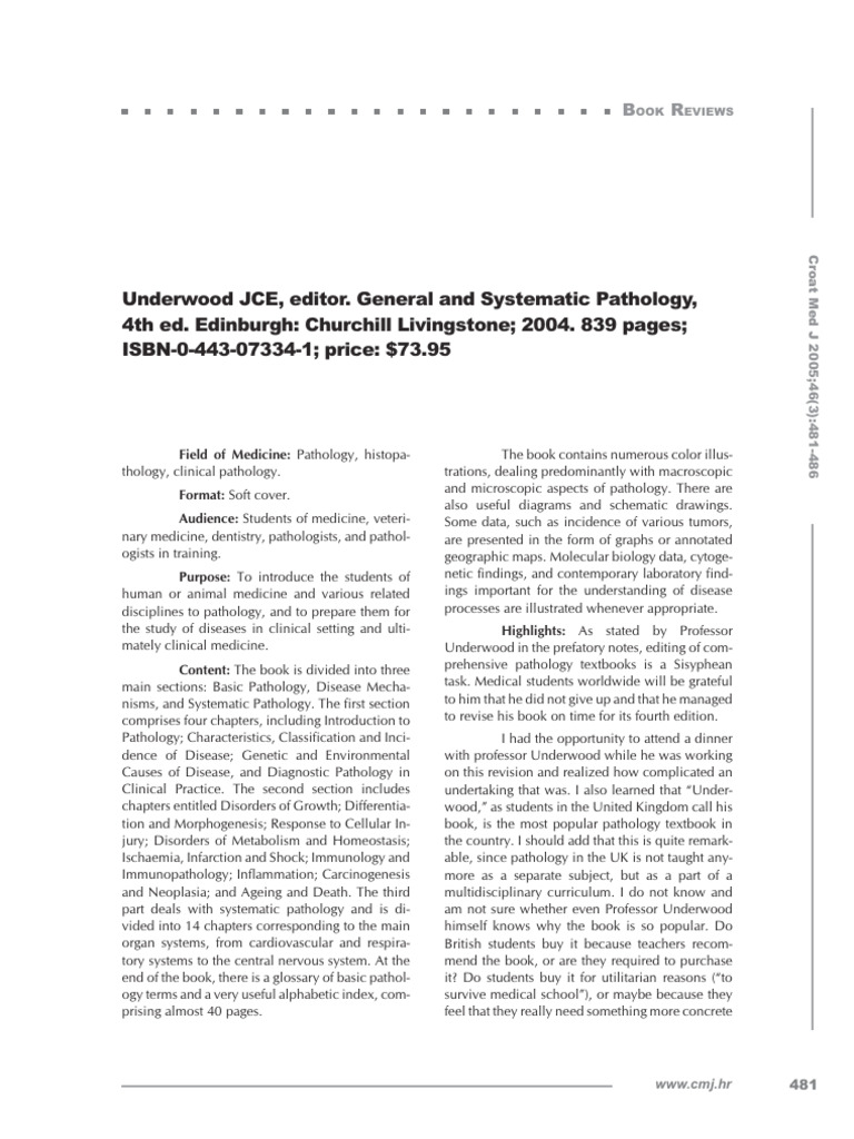 Zagreb, Croatia. Comments of current Croatian British textbooks of pathology such as the Robbins