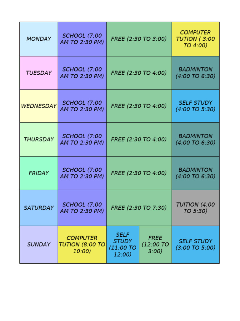 AZIZ SIR (7:30 SELF STUDY (10:00 TO
