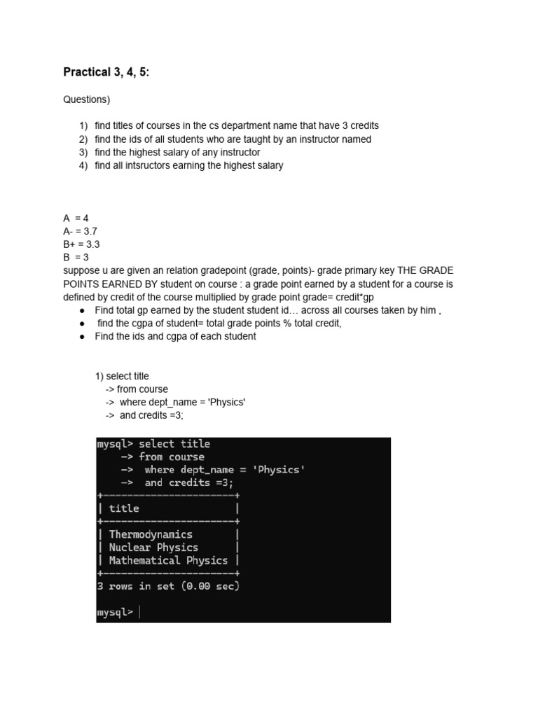 2)SELECT SUM(credits * points) / SUM(credits) AS GPA