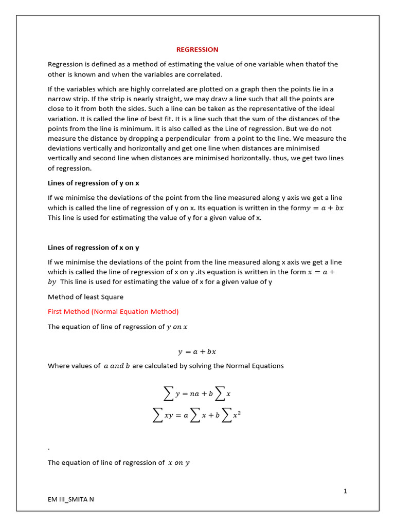which is called the line of regression of y on x. Its equation is written in the form𝑦 = 𝑎 + 𝑏𝑥