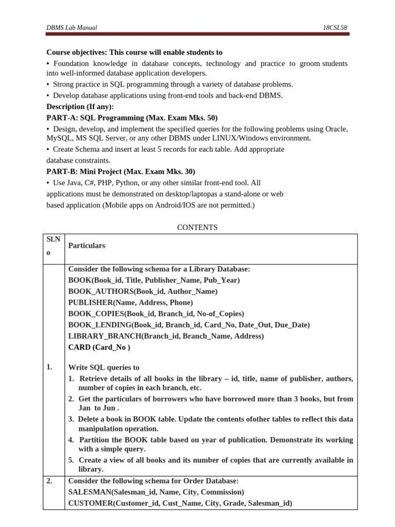 Exercise 3 To understand and demonstrate DDL, DML and DCL Commands of SQL