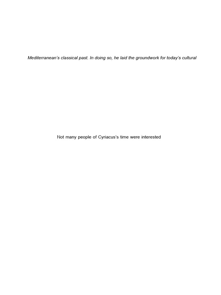 imperial Rome. Not many people of Cyriacus’s time were interested in historical travel,