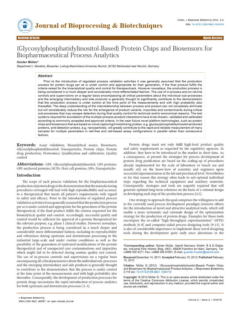 Citation: Müller G (2012) (Glycosylphosphatidylinositol-Based) Protein Chips and Biosensors for Biopharmaceutical Process Analytics. J Bioprocess