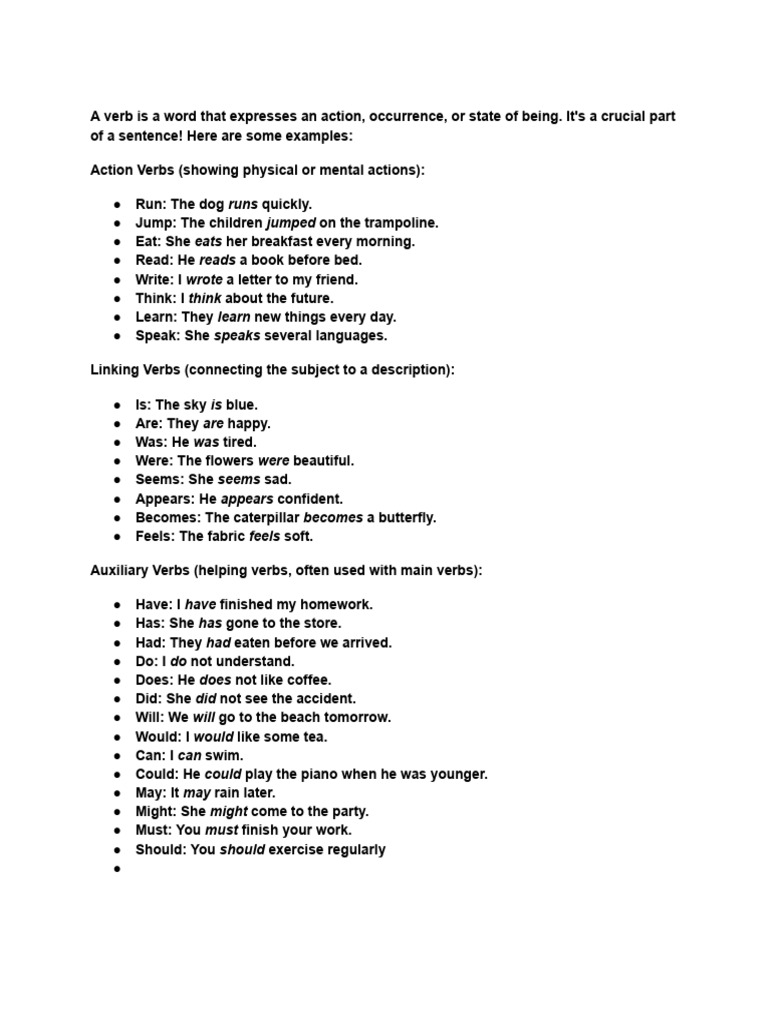 Auxiliary Verbs (helping verbs, often used with main verbs):