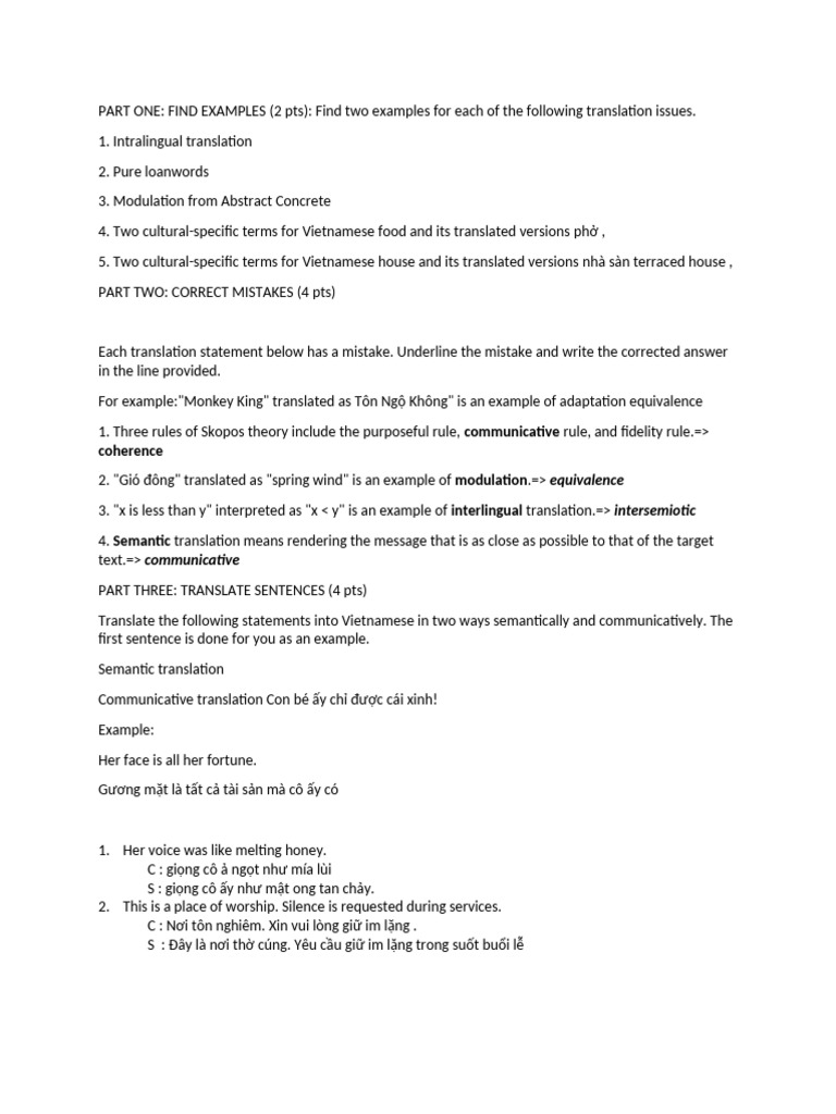 1. Translate the following statement into Vietnamese in 2 ways: semantically and