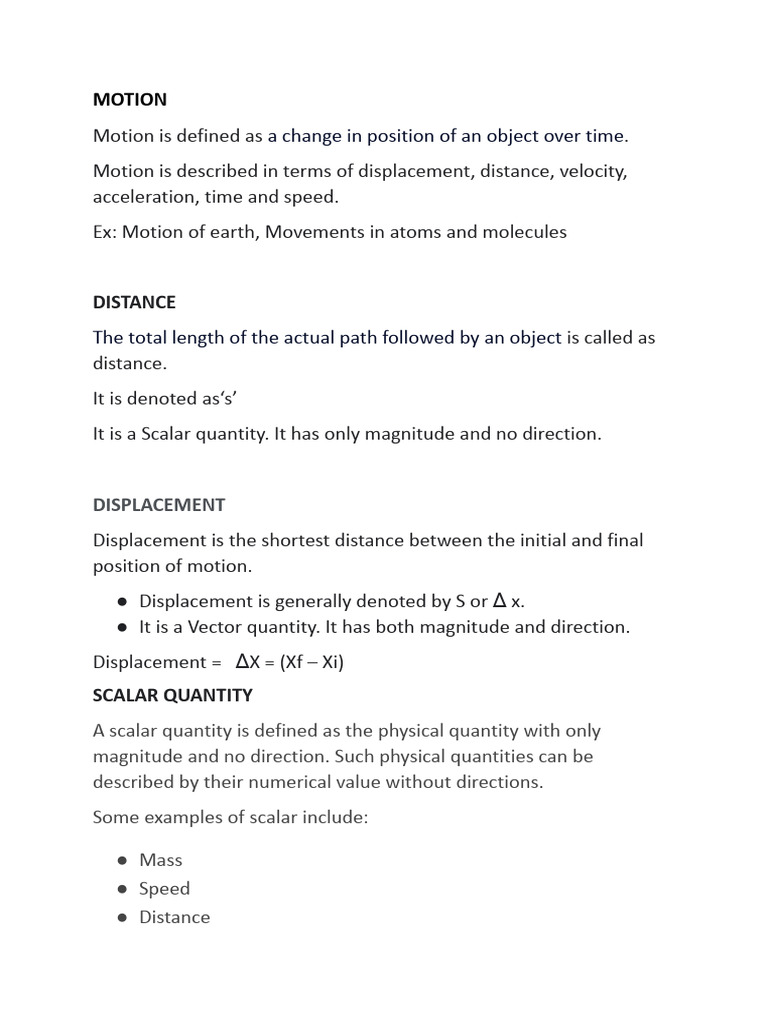 Motion is defined as a change in position of an object over time.