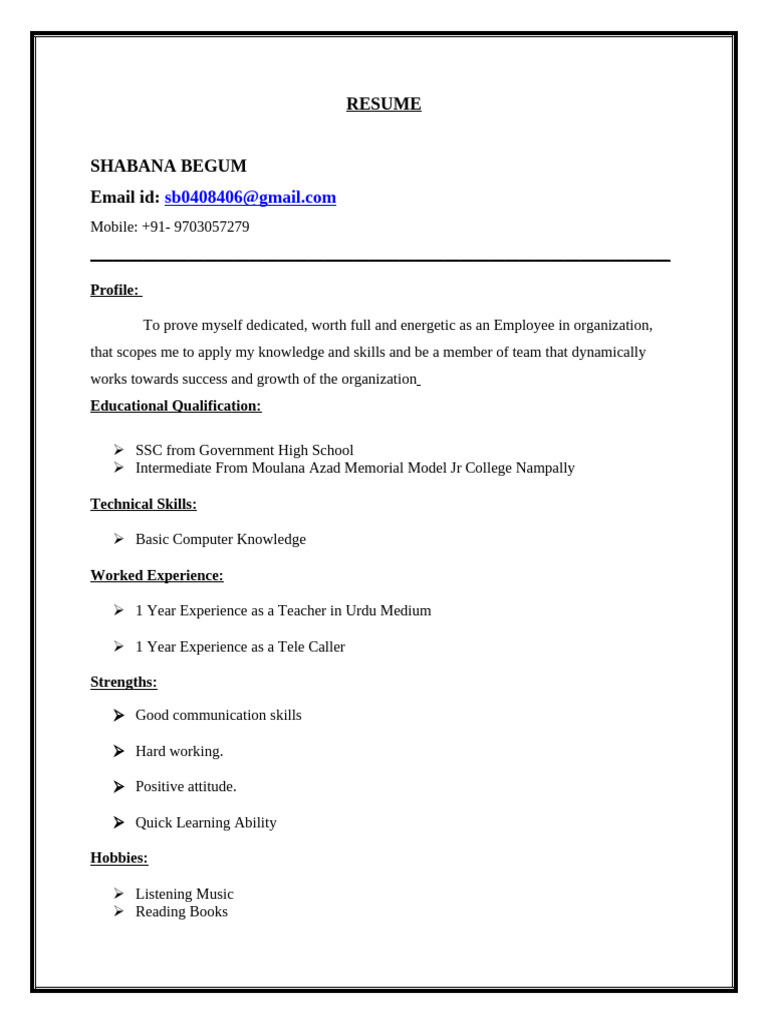 Name : SHABANA BEGUM