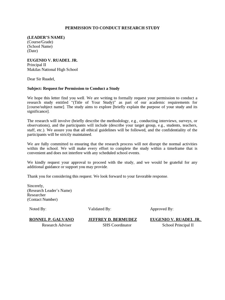 research study entitled “(Title of Your Study)” as part of our academic requirements for