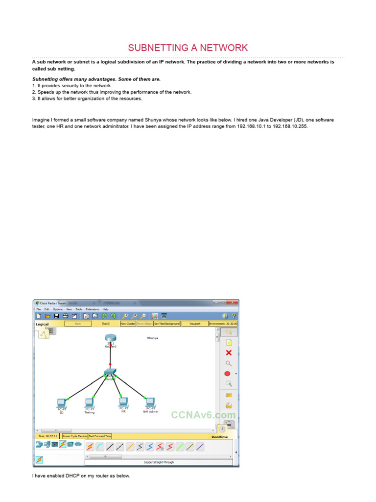 tester, one HR and one network adminitrator. I have been assigned the IP address range from 192.168.10.1 to 192.168.10.255.
