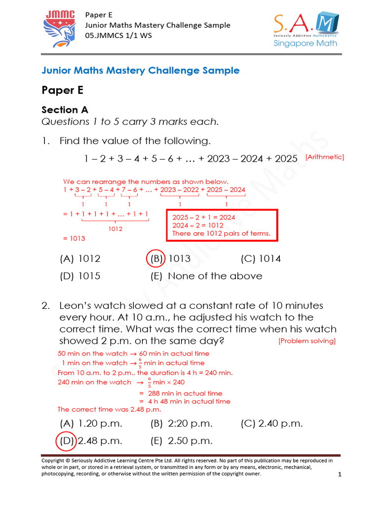 Junior Maths Mastery Challenge Sample