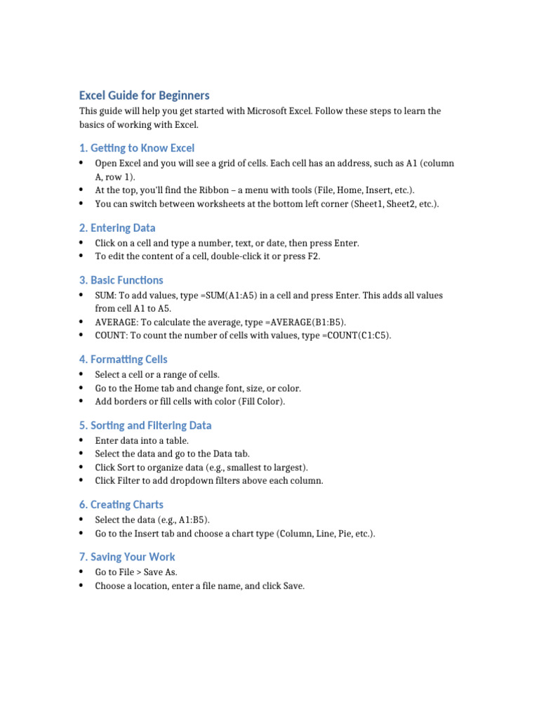 This guide will help you get started with Microsoft Excel. Follow these steps to learn the
