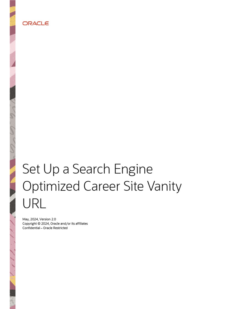 This document provides the setup steps to enable a search engine optimized career site Vanity URL solution.