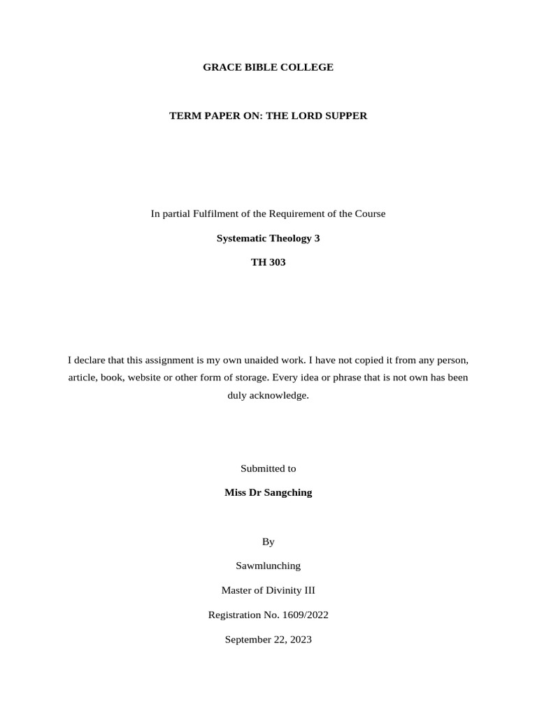 Lord Supper, and through the analysis of the given Scriptural references, it is safe to say that
