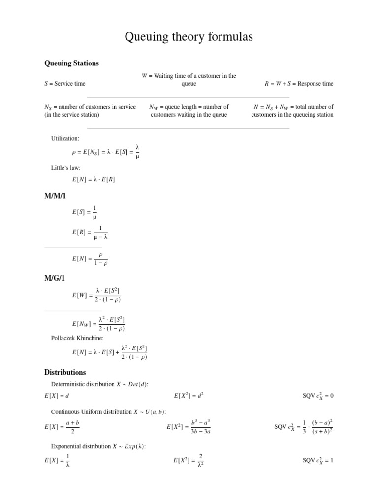 Queuing theory formulas