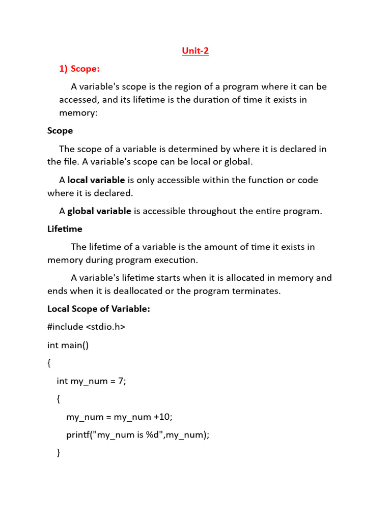 the file. A variable's scope can be local or global.