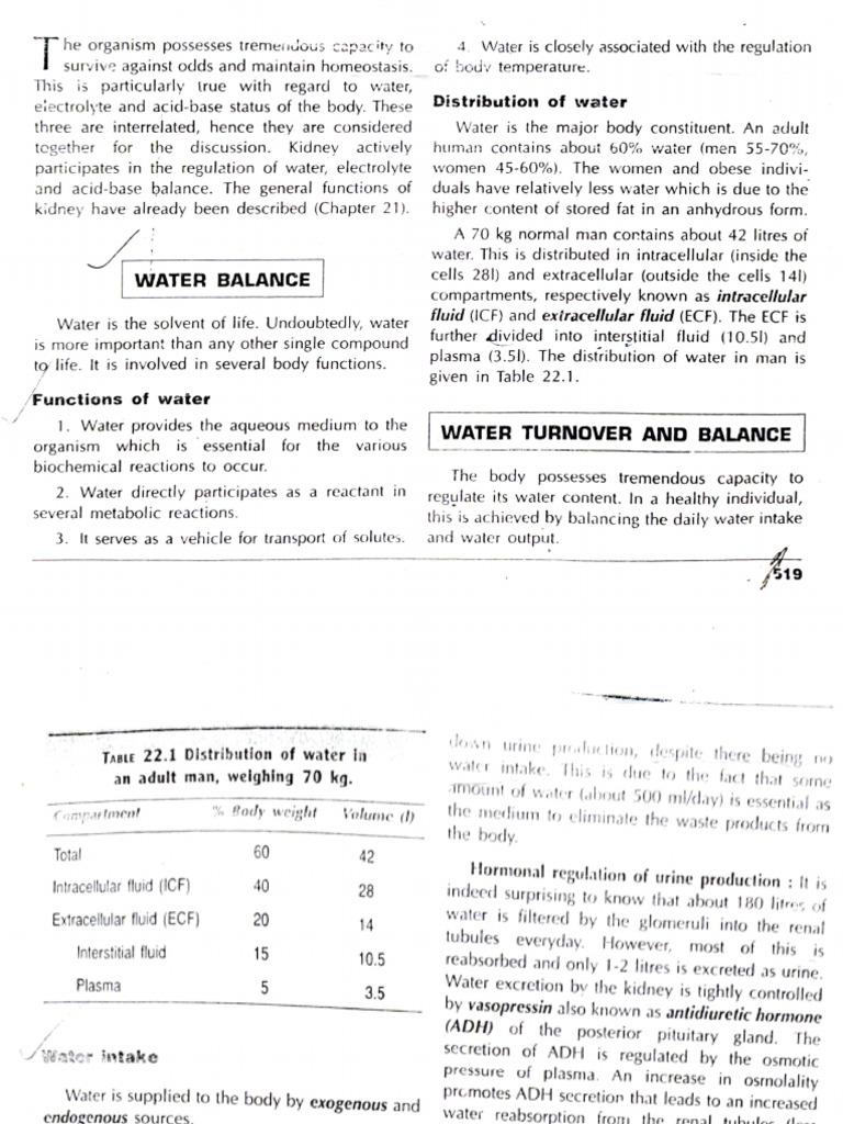 three are interrelated, hence they are considered Water is the major body constituent. An adult