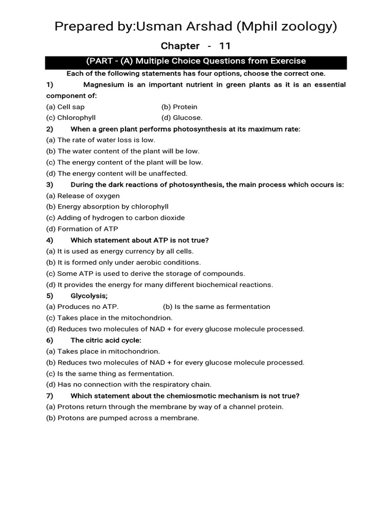 1) Magnesium is an important nutrient in green plants as it is an essential
