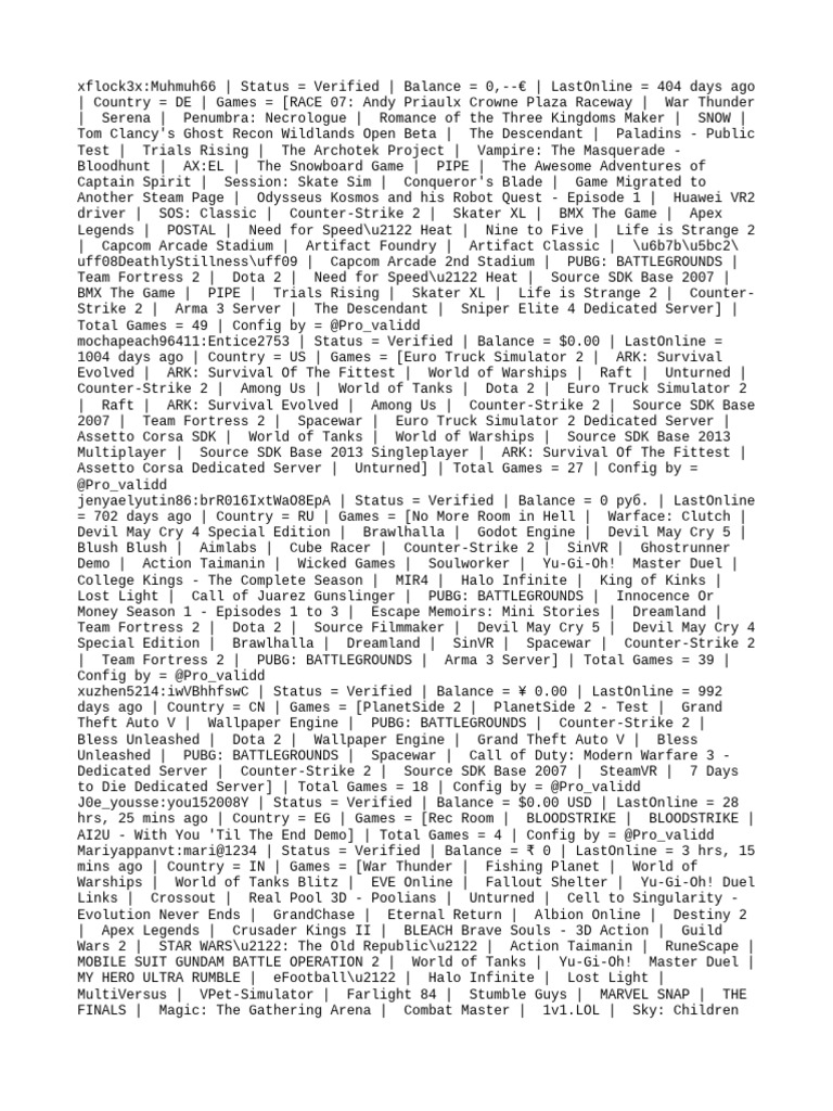 berkt07:mertada123 | Status = Verified | Balance = $1.01 USD | LastOnline = 876