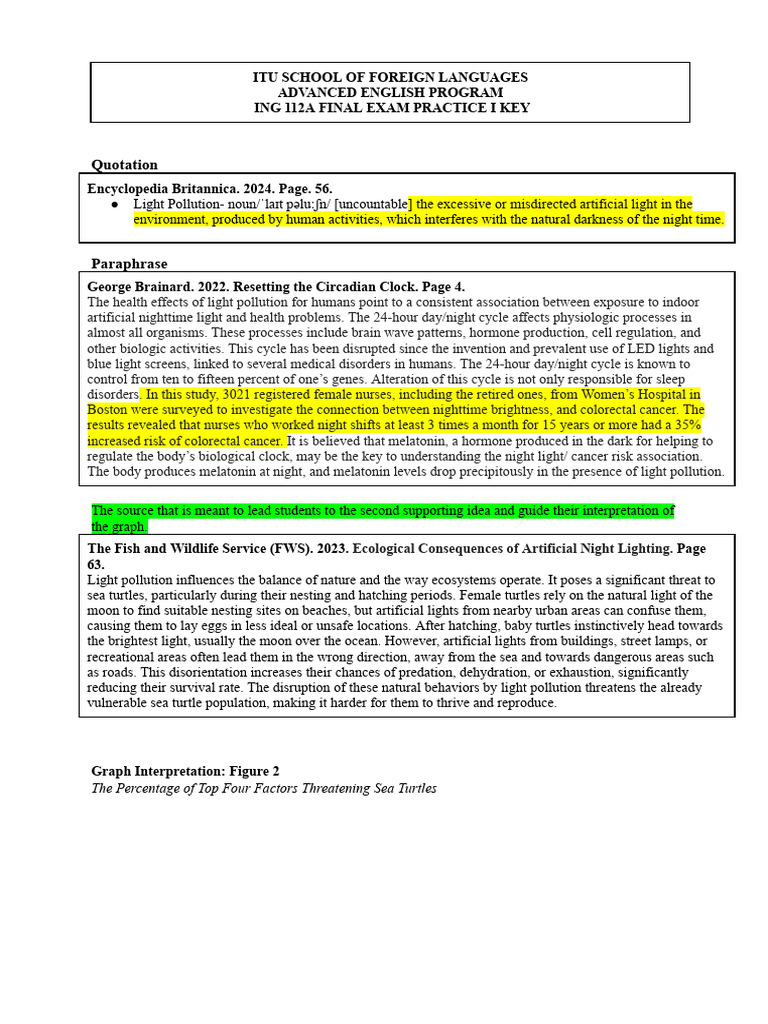 subject matter. I (Direct Quotation) Encyclopedia Britannica defines light pollution as “the