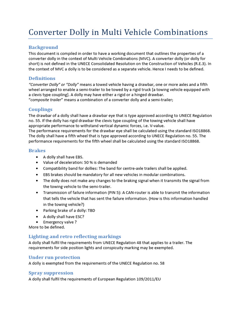 A dolly shall fulfil the requirements from UNECE Regulation 48 that applies to a trailer. The