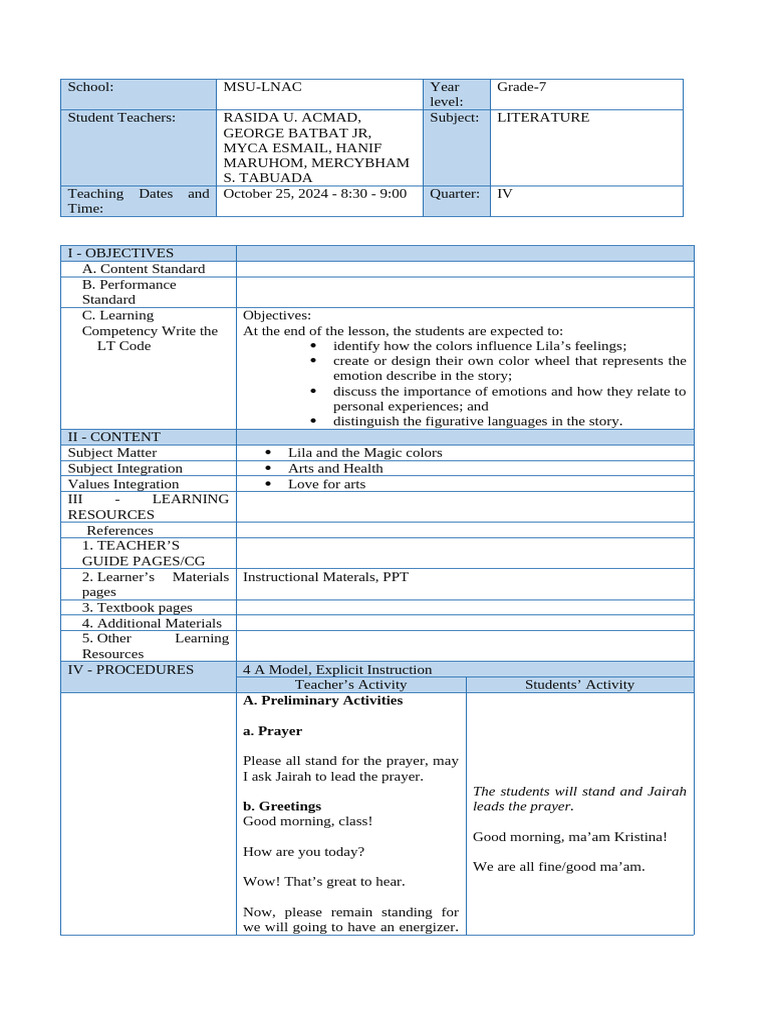 Student Teachers: RASIDA U. ACMAD, Subject: LITERATURE