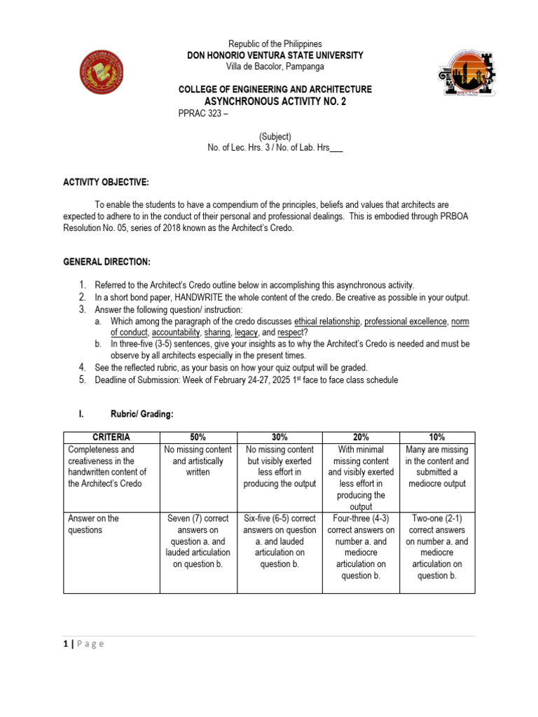 1. Referred to the Architect’s Credo outline below in accomplishing this asynchronous activity.