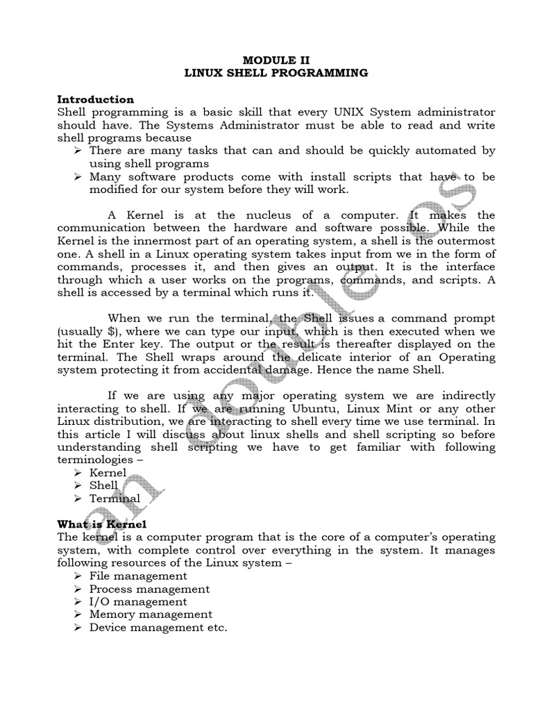 devices such as keyboards or from files. The shell gets started when the user