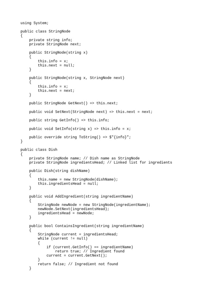 private StringNode ingredientsHead; // Linked list for ingredients