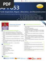 1. Preamble: Storage Tanks are the major installations in Petroleum Refineries, Petrochemical plants, Oil terminals and other process plants. They store variety of fluids, which may be Explosive, Corrosive or Toxic in nature. The equipments are also subjected to fluid head pressures and moderate temperatures. All these factors may cause corrosion and other damages to the vital equipments. The corrosion may cause thinning, pitting or cracking of tank walls. The internal head will tend to bulge the tanks or piping at the corroded locations, releasing the explosive or toxic contents resulting in serious consequences to the plant, personnel and the people at large. It is therefore essential that during the planned shutdowns, the degradation and damages inflicted to the Plant equipment, Piping and Tanks should be monitored and evaluated so as to arrive at the 3R decisions. i.e. RunRepair-Replace decisions. More specifically, these courses describe the essentials of what to inspect, where to inspect, how much to inspect and what to accept so as to evaluate the safety and mechanical integrity of in-service equipments. The courses also cover methods of repair, alteration, re-rating and replacements of affected equipments.