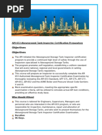 As per the Effectivity Sheet, there are total 9 codes prescribed for examination. However, all of them are not equally important and do not therefore require equal emphasis. About 50 percent questions are asked from one code API 653 which is hardly 40 pages, while all other 8 codes contribute 50% marks which are more than 1,000 pages. Following distribution scheme will help the participant to decide how much time he should spend for each document during preparation. 3. Codes and Standards for study and their weight age: Note: The weight age indicated is approximate and for guidance only. A . API Publications: API RP 650 Vertical storage tanks Construction code API 653, Aboveground tanks Inspection Code API RP 575, Inspection of Storage tanks API RP 651 Cathodic Protection of Storage tanks API RP 562 Lining of Tank bottom API RP 571, Damage Mechanisms API RP 577, Welding Inspection and Metallurgy B. ASME Publications: Section V, Nondestructive Examination Section IX, Welding and Brazing Qualifications